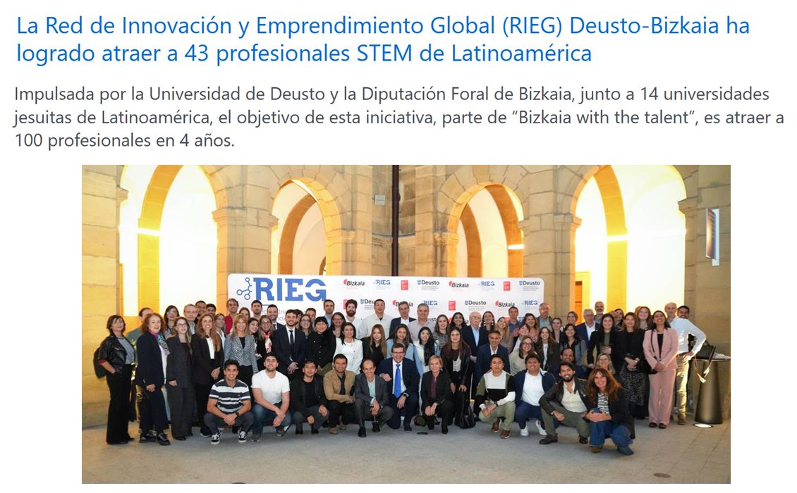 La RIEG - Red de Innovación y Emprendimiento Global Deusto-Bizkaia ha logrado atraer a 43 profesionales STEM de Latinoamérica en apenas dos ediciones. 👌
