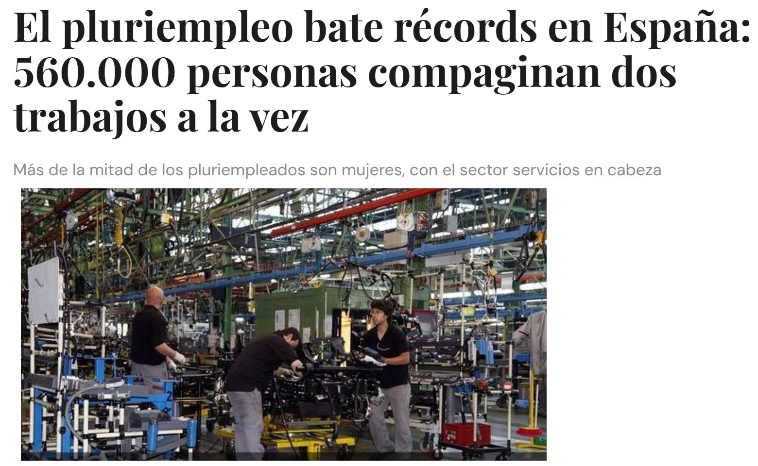 • Según los últimos datos, 560.000 personas tienen dos empleos a la vez.
