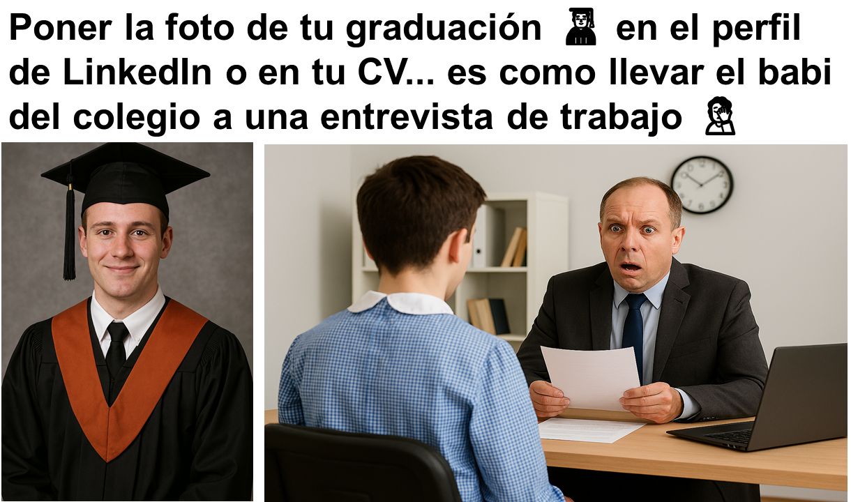 La foto de graduaciรณn en LinkedIn solo sirve para que el reclutador piense que sigues celebrando el fin de curso. ๐ฅณ
